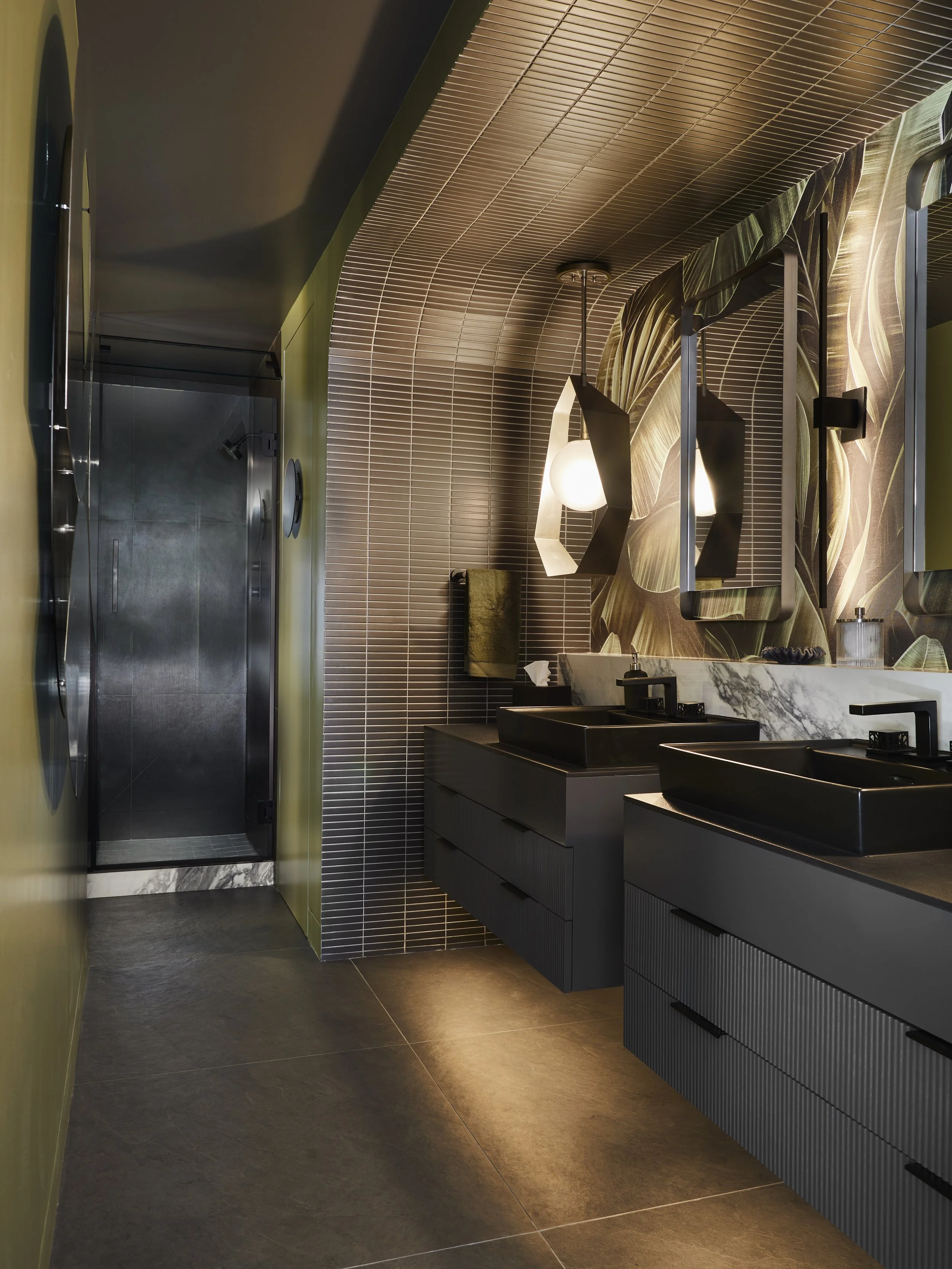 Between the shower and the tub area, where once existed dead space, we seized the opportunity to introduce architectural drama. By adding two arches, we transformed this void into a visual delight, seamlessly demarcating distinct zones within the bathroom.