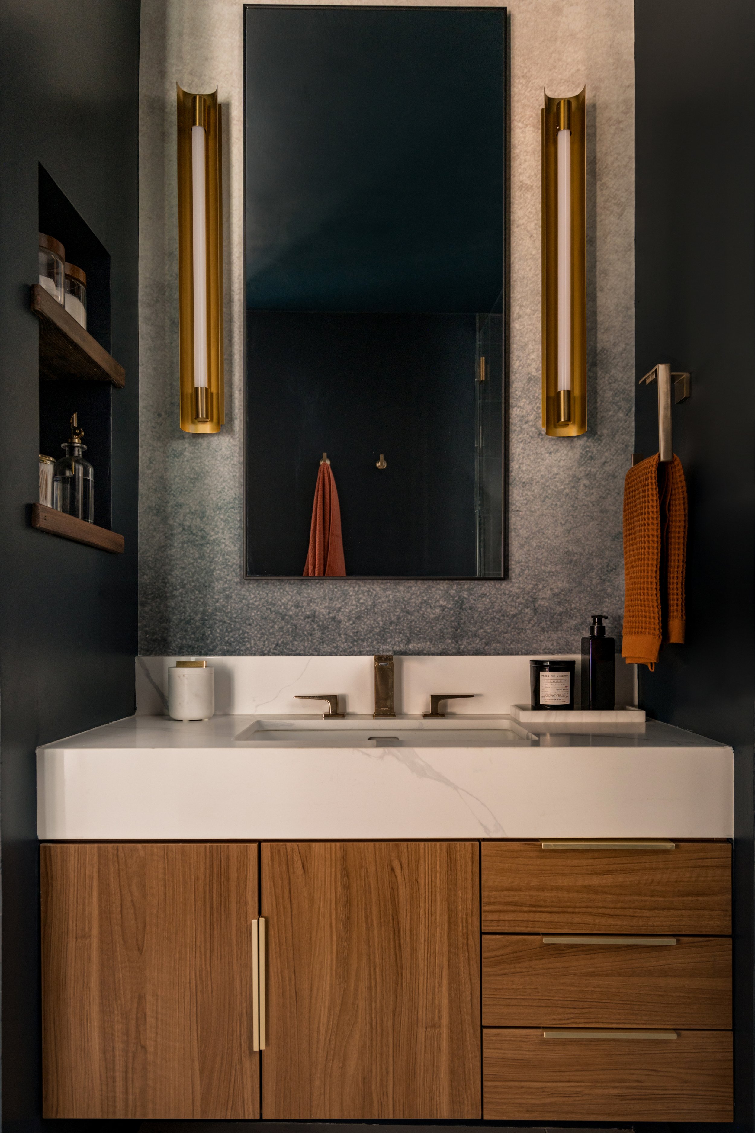 Overall, we aimed to create a space that seamlessly blends modern and rustic elements, making it both moody and inviting, just as our client envisioned.